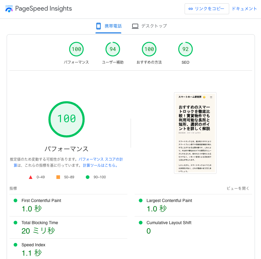 SEOにおいてページの応答速度が重要な今日において、Google公式の応答速度評価ツール「PageSpeed Insights」では驚異の100点満点